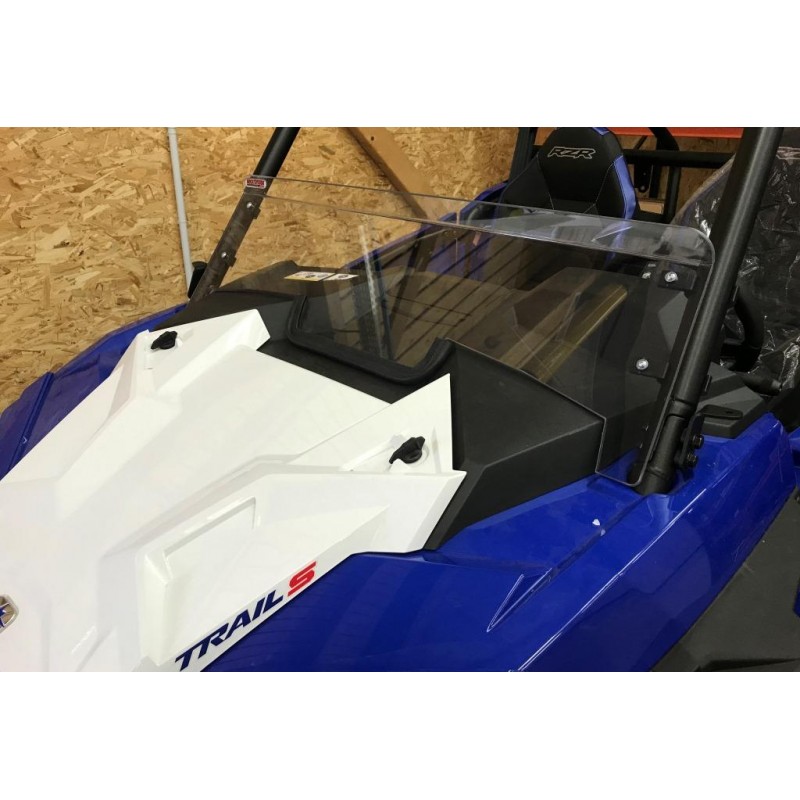 Montage sécurisé : Le demi pare-brise est conçu pour un montage sécurisé sur le châssis du SSV. Des fixations robustes et des matériaux de qualité assurent la stabilité du demi pare-brise même dans des conditions de conduite tout-terrain.