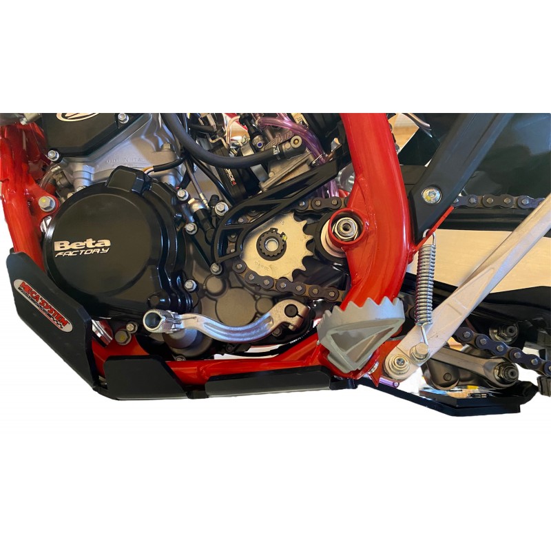 Protège les carters moteurs : Le sabot de protection est spécifiquement conçu pour protéger les carters moteurs de la moto et le dessous des cales pieds. En cas de choc avec des obstacles, il absorbe l'impact et prévient les dommages au moteur. Pour les motos disposant de biellettes, une protection est intégrée.